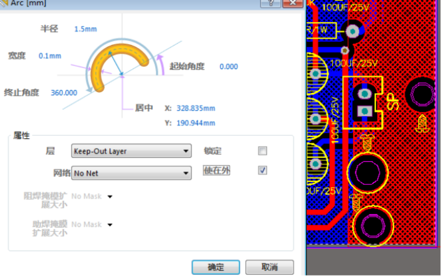 2. 雙擊不需要成形的線或圈(形狀)如下圖把KEEP-OUT(使在外)勾選擇就 起到禁止作用,勾選后將不會作為成形開孔用。
