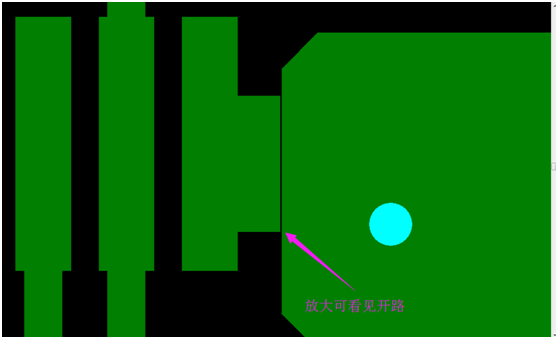 而Fill填到哪里就連接到哪里,填不到位會造成開路。比如下圖的開路案例: