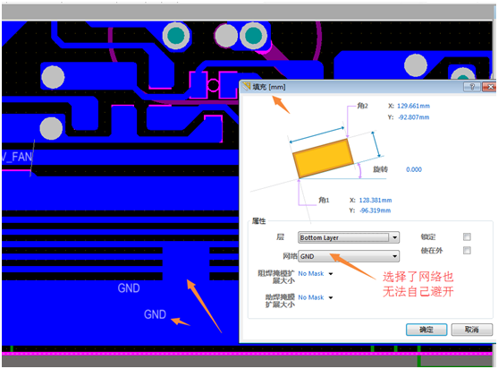 ?運用Fill鋪銅會造成板子開路和短路及無法生成Gerber(光繪文件),正確的Layout布線請采用多邊形鋪銅,連接某一網(wǎng)絡(luò),它會按軟件規(guī)則自動避開其它網(wǎng)絡(luò)。