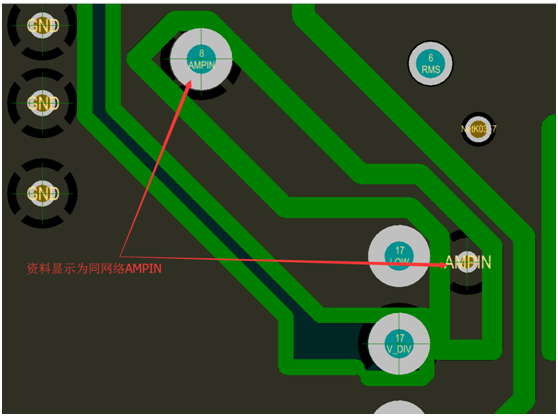 層層排查,發(fā)現(xiàn)這2個(gè)點(diǎn)設(shè)計(jì)在內(nèi)層相連,也是同一網(wǎng)絡(luò),但事實(shí)真正相連嗎?