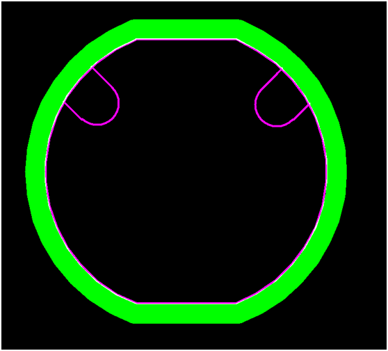 1)沿外形層只鑼外形(圖中綠色為鑼帶軌跡)