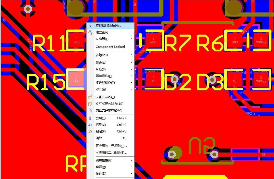 首先點中一個器件,右鍵找到查找相似對象然后直接應(yīng)用,不要改任何設(shè)置。器件就都會選中,然后確定,去掉勾選Show Name字符就消失了,大家可以試試!