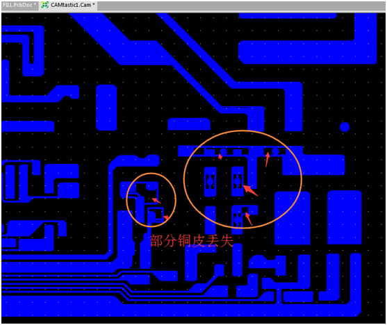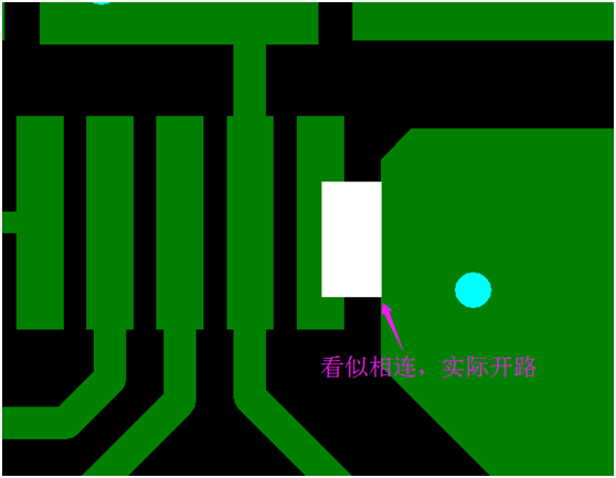 而Fill填到哪里就連接到哪里,填不到位會造成開路。比如下圖的開路案例:
