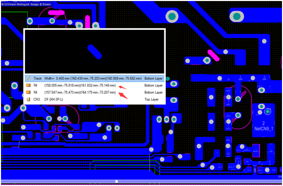■ 第二種情況:AD設(shè)計采用FILL鋪銅后造成開短路