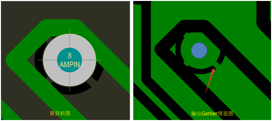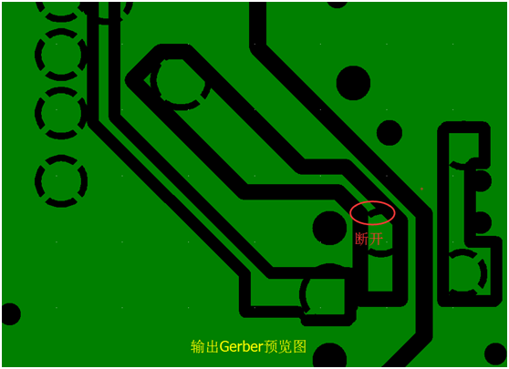 把相連的兩個(gè)焊盤點(diǎn)輸出Gerber同時(shí)放大查看……