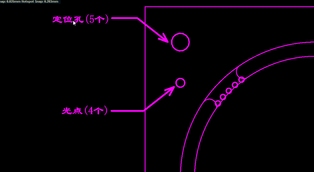 AD文件可在邊框?qū)永L制工藝邊及定位孔和Mark點(diǎn)指示,CAM工程見此信息會(huì)按規(guī)范處理好文件。