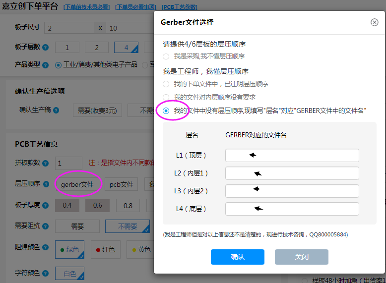 Gerber文件投單內(nèi)電層識別的順序不是您要的效果沒關(guān)系的,您可以在下單系統(tǒng)選擇您正確的層壓順序。我們會人工審核及CAM工程優(yōu)化文件。