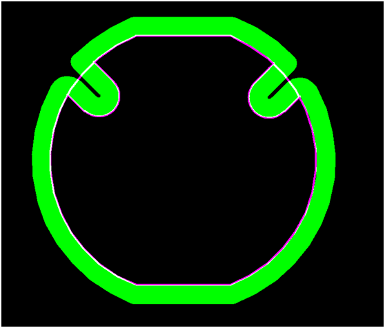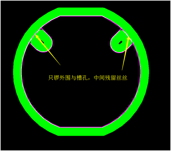 1)沿外形層只鑼外形(圖中綠色為鑼帶軌跡)