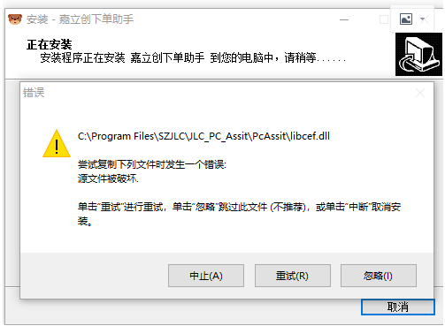 ④:安裝下載好的小助手安裝包時,提示找不到應用程序