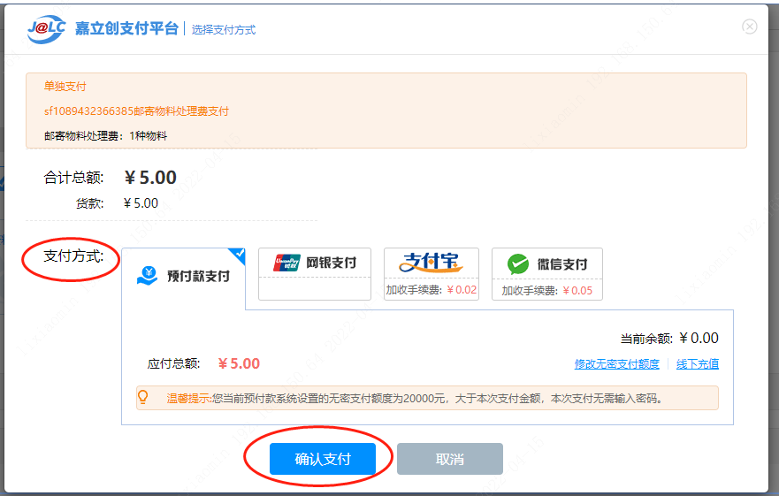 第十二步,選擇支付方式付款后,點(diǎn)擊【確認(rèn)支付】就完成了郵寄器件訂單。