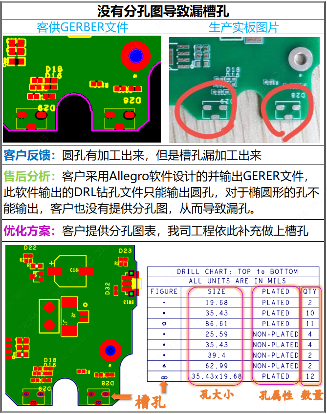 ■ 案例2:Allegro輸出的DRL鉆孔中只有圓形孔,漏了長條形的橢圓形孔