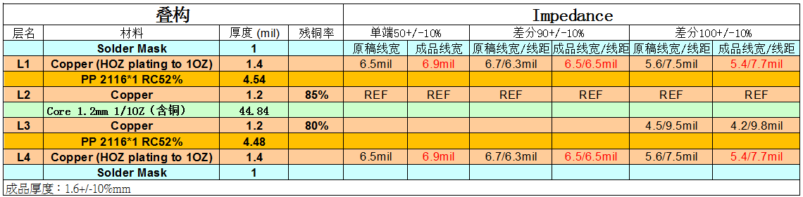 成品理論厚度=防焊厚度+外層成品銅厚+上下PP壓合后厚度+內(nèi)層芯板厚度