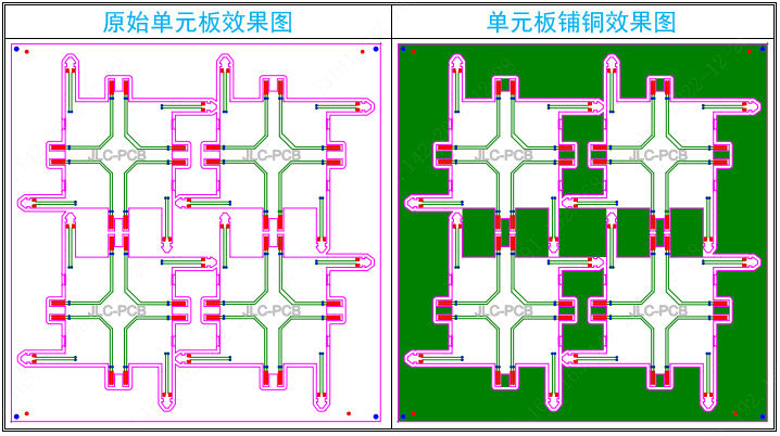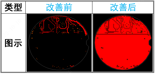 為了避免殘銅率過(guò)低引起填膠量不均勻引起板厚公差大,以及不均勻鋪銅導(dǎo)致電鍍不均等品質(zhì)隱患,我們將對(duì)所有多層板增加銅面: