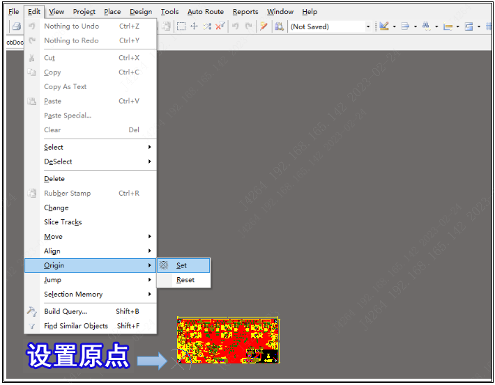 1) Edit-Origin-Set,在板左下角選一處設置原點