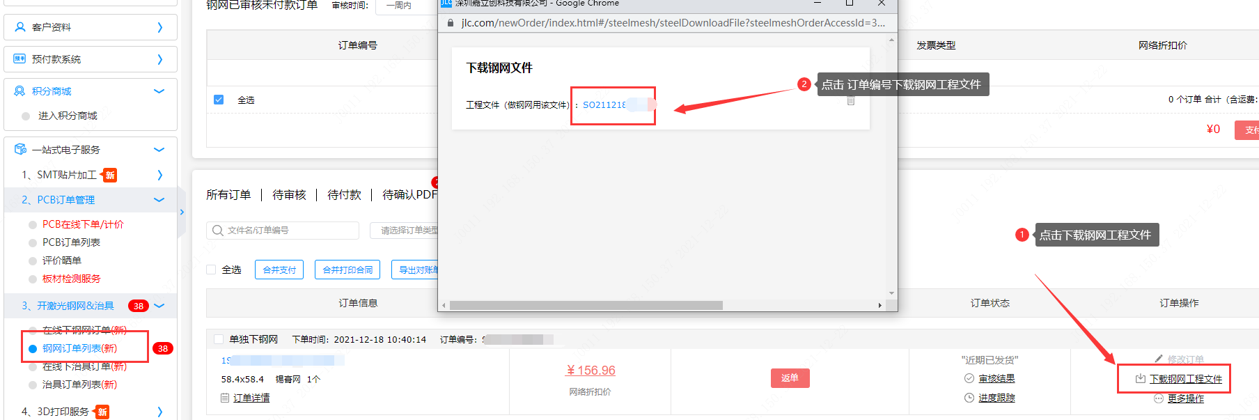 1)已下過的鋼網(wǎng)訂單,需要鋼網(wǎng)工程文件,可在系統(tǒng)上直接下載我司鋼網(wǎng)工程師制作的鋼網(wǎng)工程文件,操作如下: