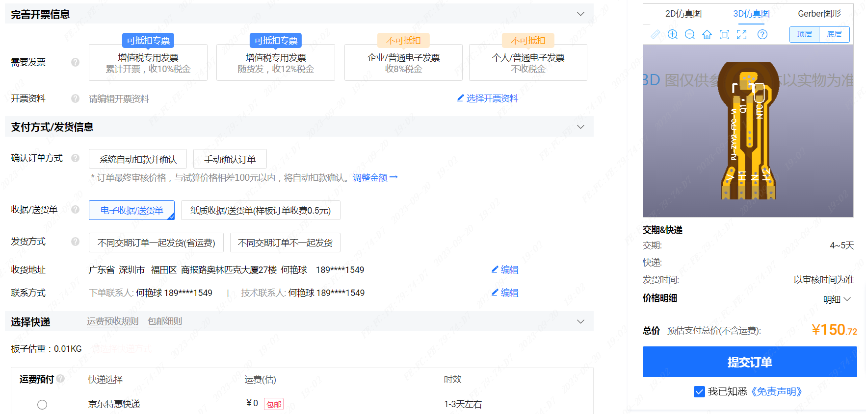 10.完善開票信息,選擇快遞公司,提交訂單就可以了