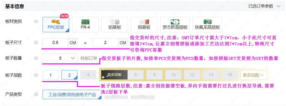 4.選擇FPC軟板(如果相同工藝下單,此窗口可能不會彈出來)